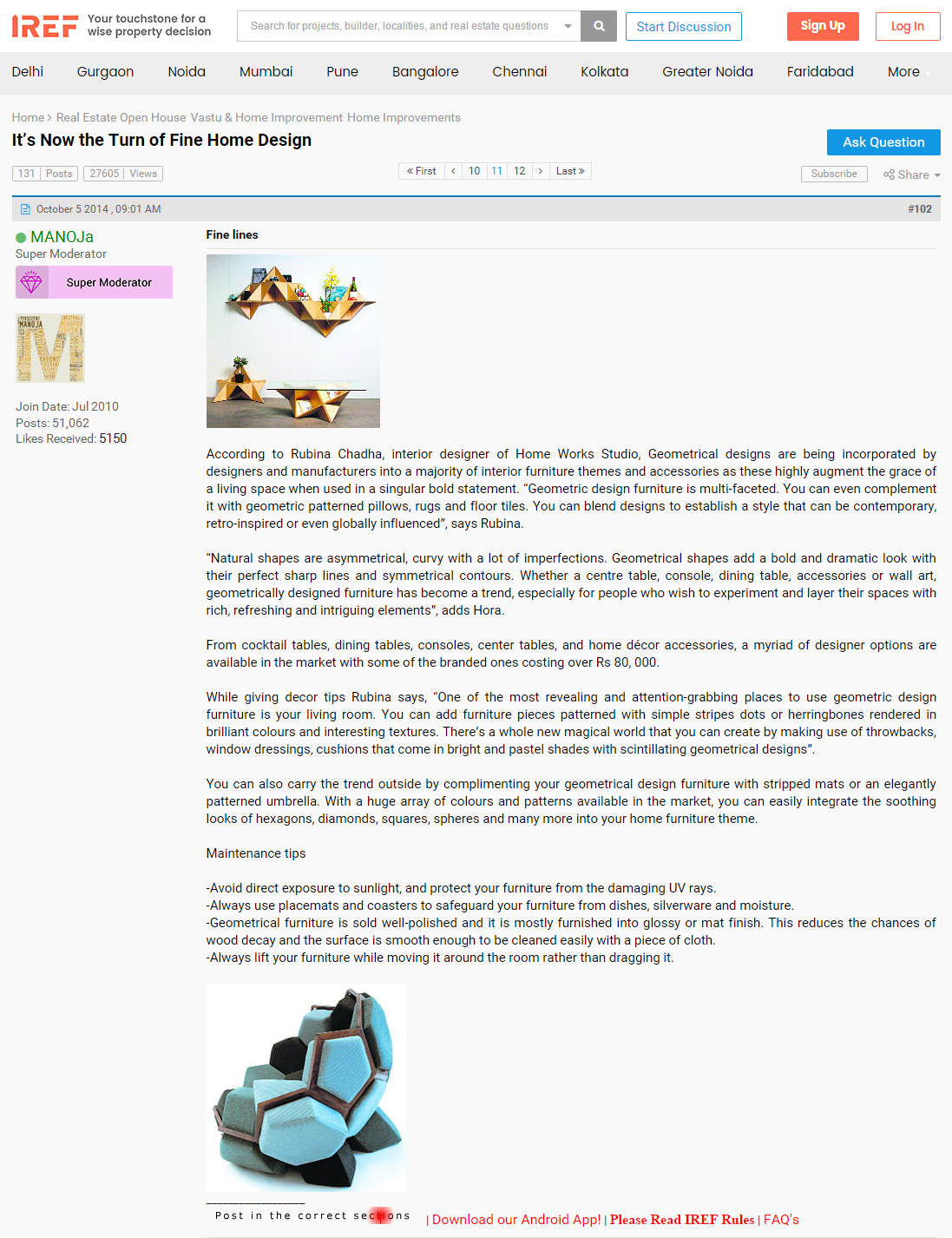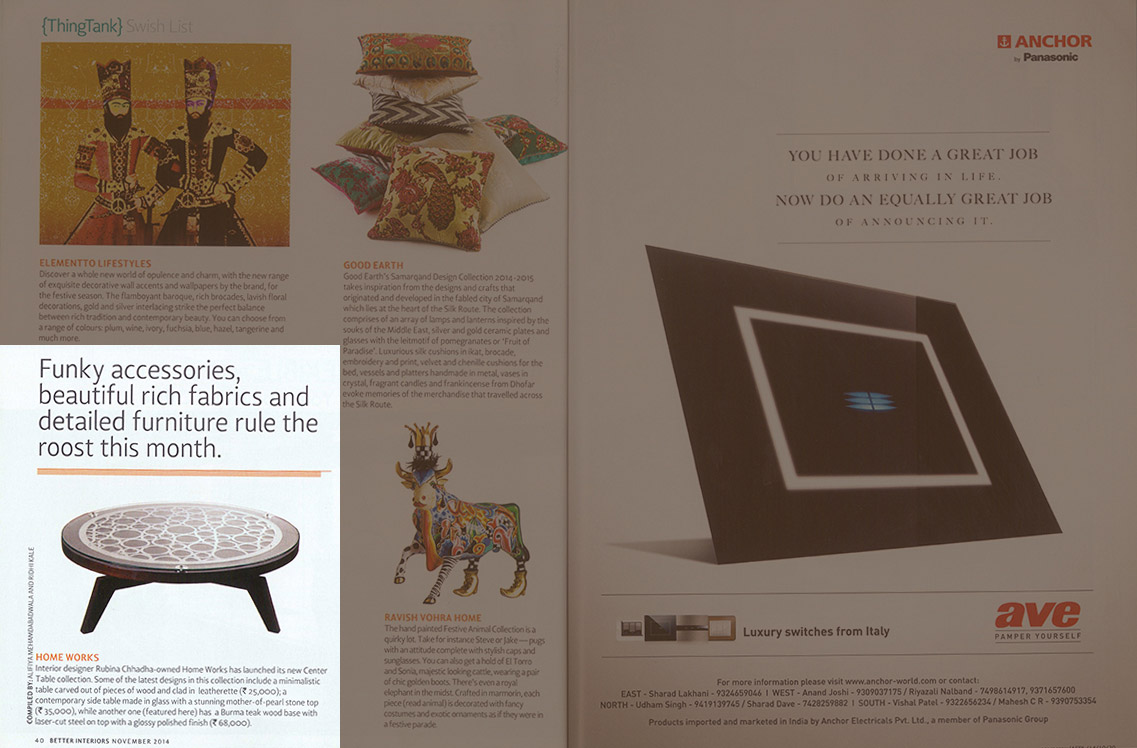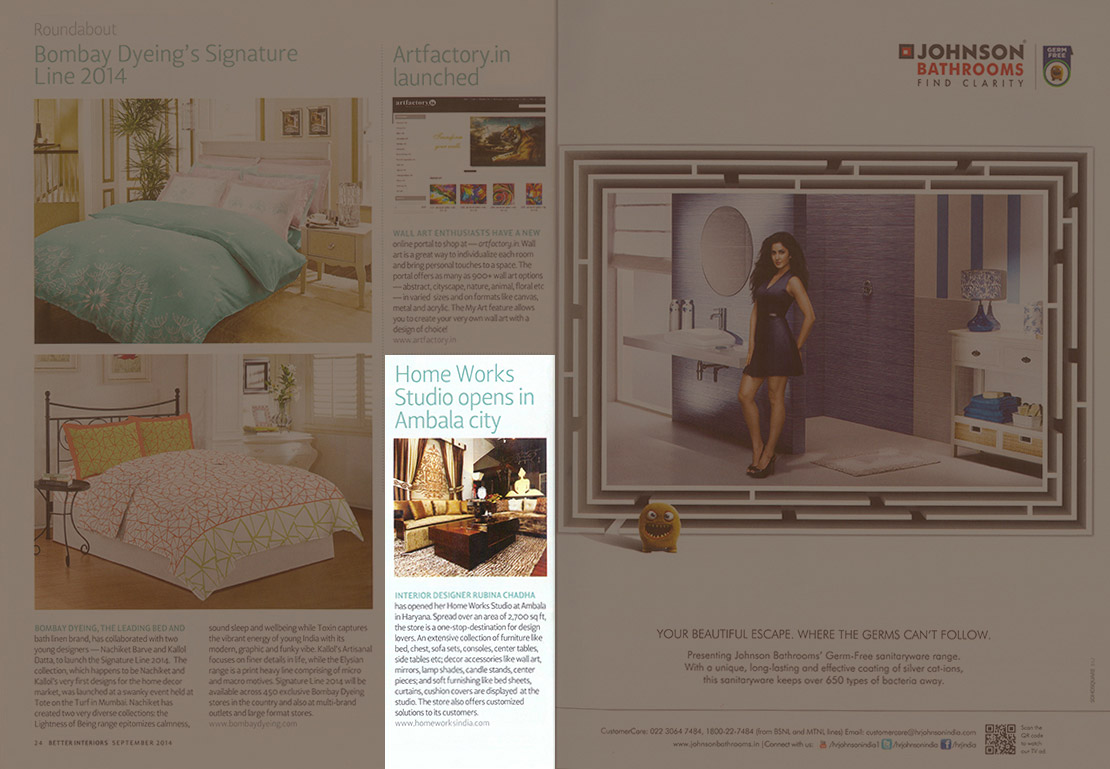 The Oh so perfection and beauty given shape in your house by Homeworks keeps it there alive in media, through the constant buzz it makes. The infrequent conceptualization and the dream like furniture and dressings for every space of your home through the classy Rubina Chadha has got ample recognition everywhere in press!