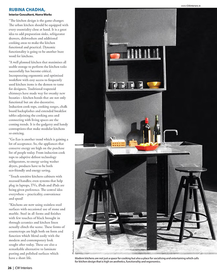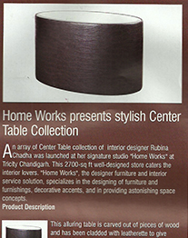 The Oh so perfection and beauty given shape in your house by Homeworks keeps it there alive in media, through the constant buzz it makes. The infrequent conceptualization and the dream like furniture and dressings for every space of your home through the classy Rubina Chadha has got ample recognition everywhere in press!